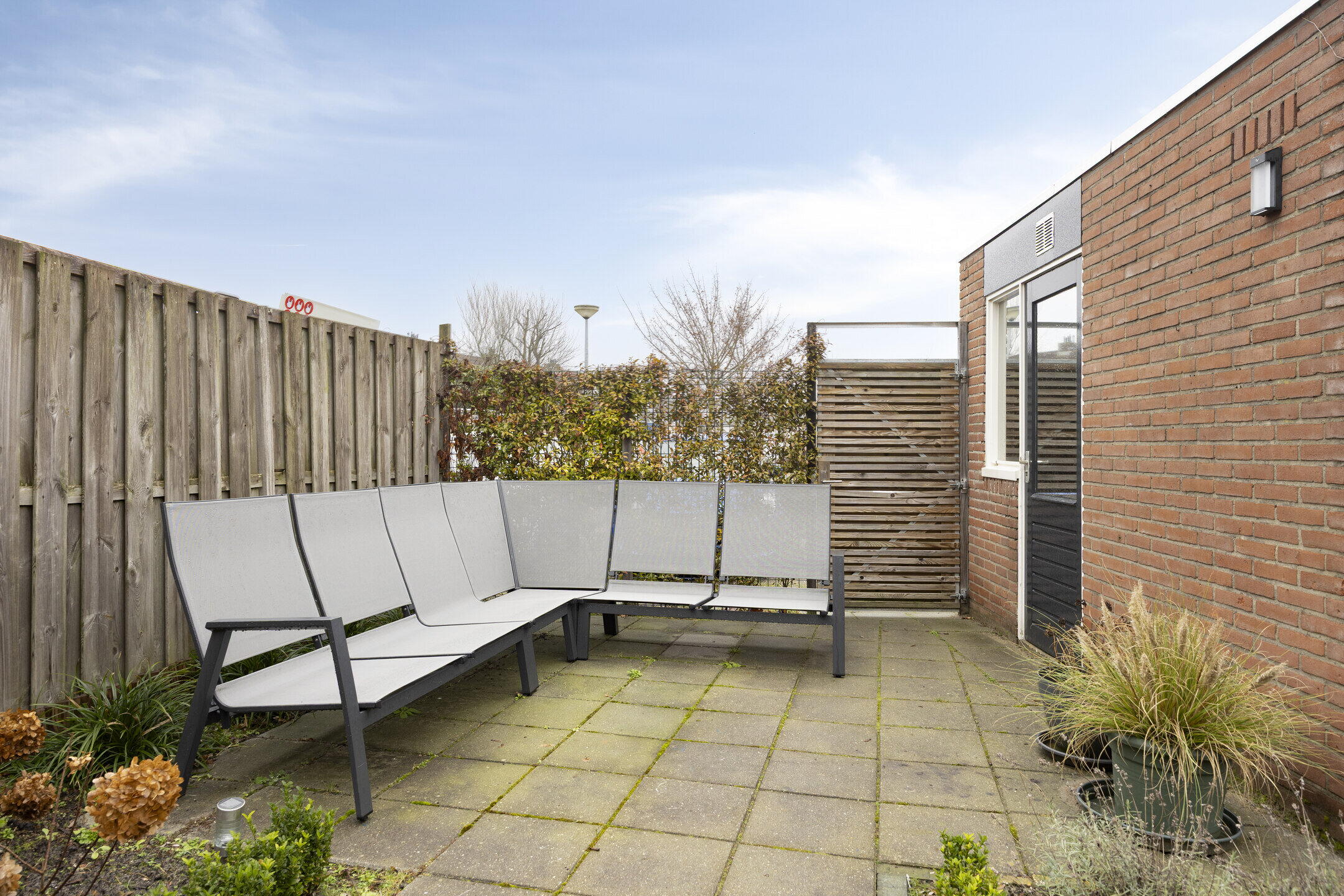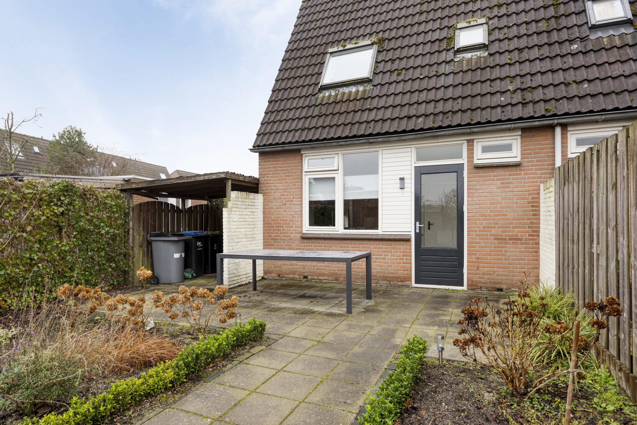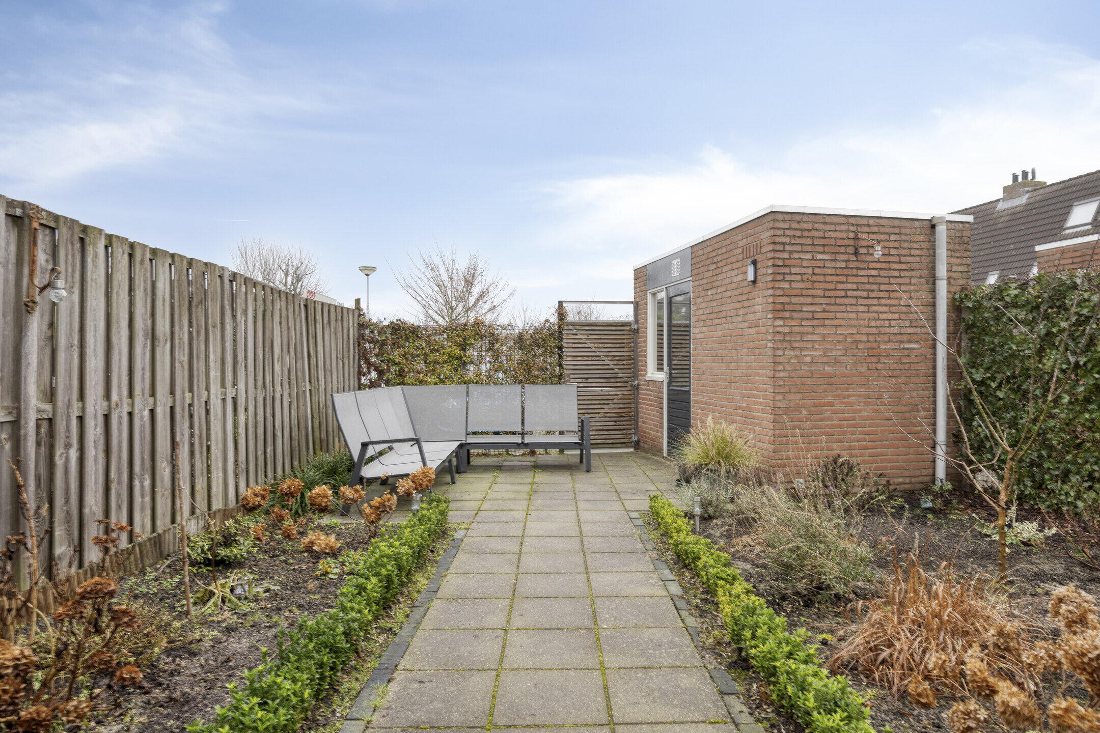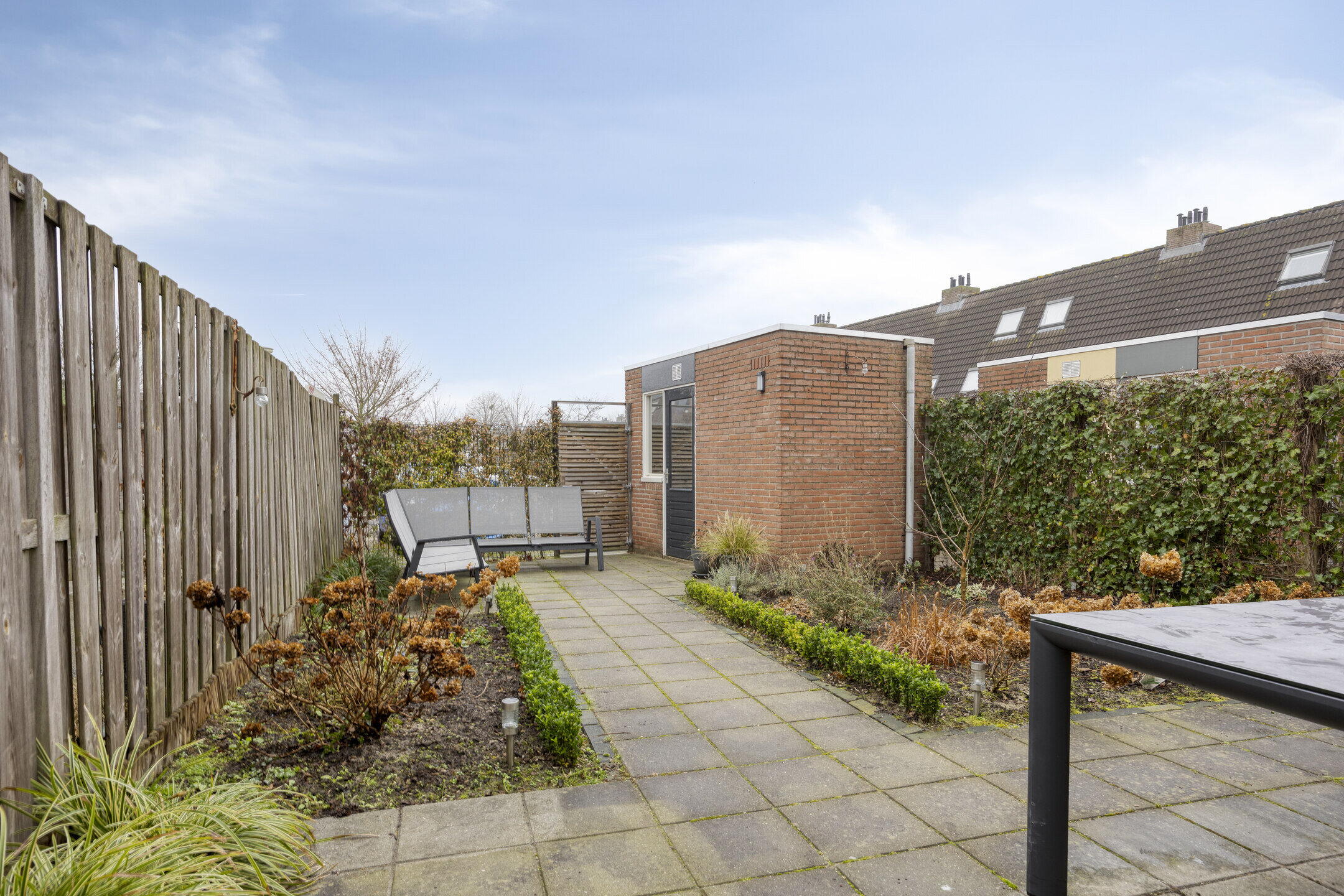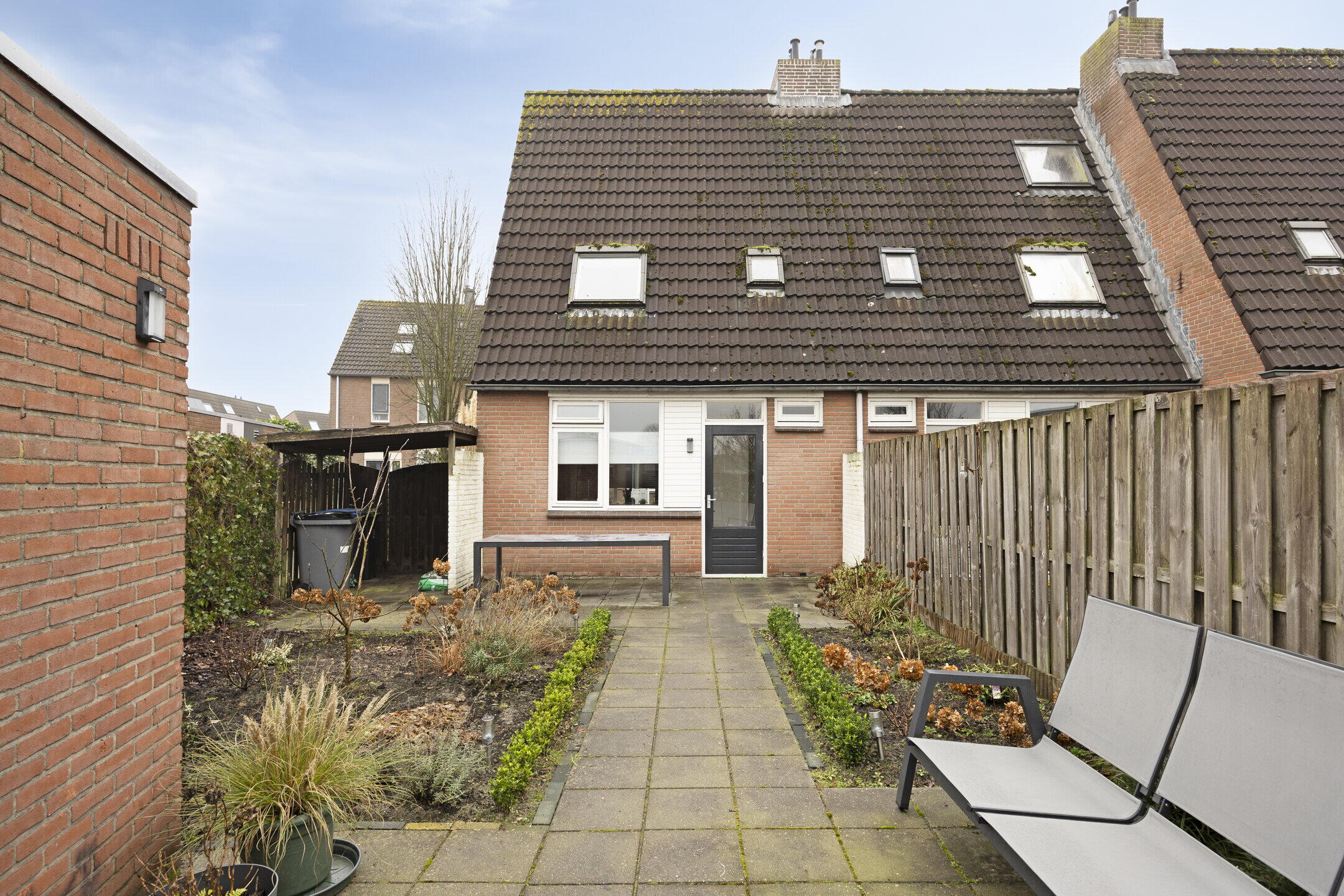 Door de hoekligging beschikt de woning over een royale achter- en zijtuin, waar je op verschillende momenten van de dag van de zon kunt genieten. Aan de zijkant van de tuin bevindt zich een houten overkapping, ideaal voor het stallen van fietsen, met een poort naar de voorzijde van de woning. Achter in de tuin staat een stenen berging met elektra en er is een achterom. De achtertuin grenst aan een parkeerpleintje, waardoor je de auto gemakkelijk dichtbij kunt parkeren – een praktisch voordeel in het dagelijks leven.